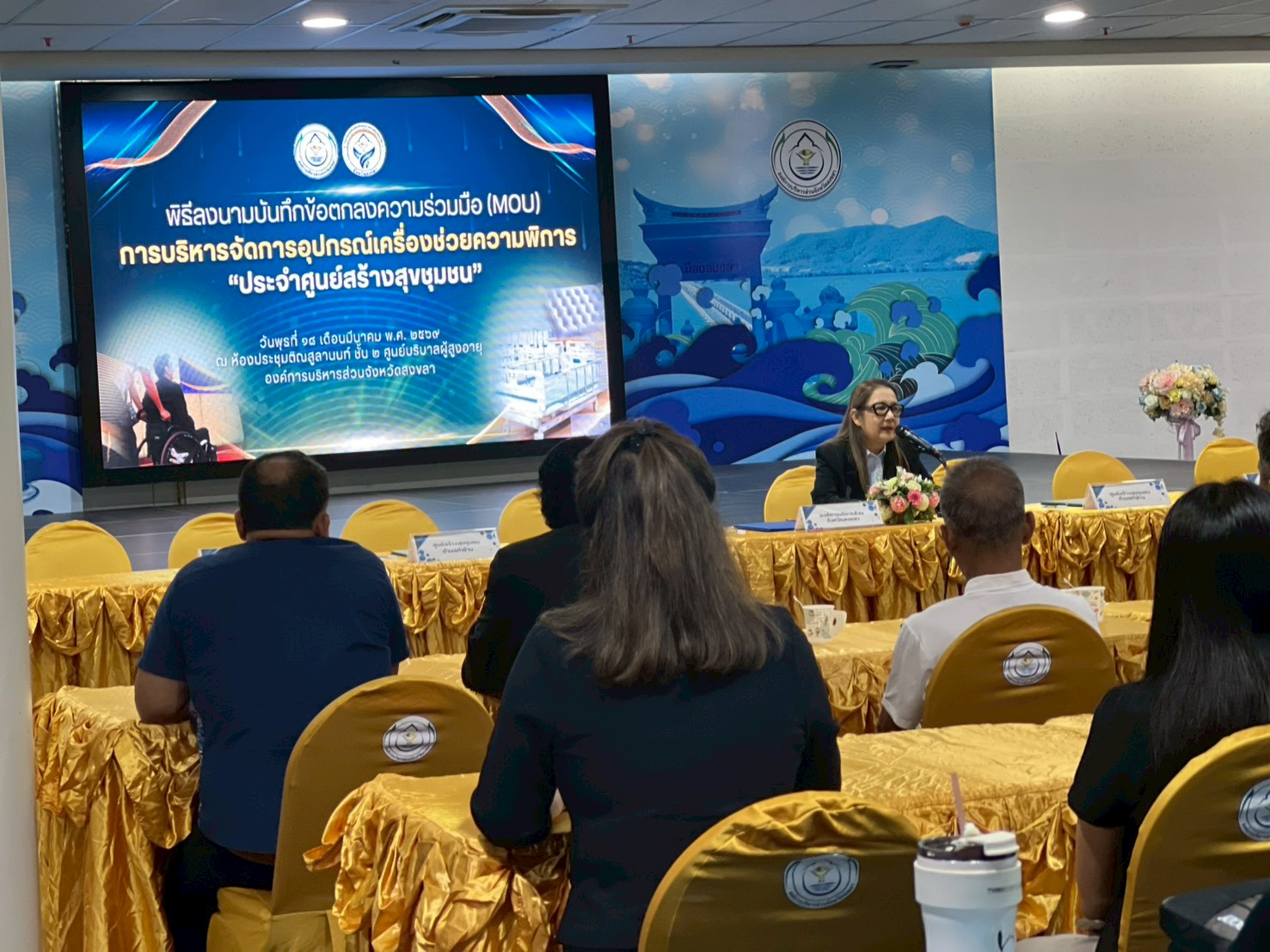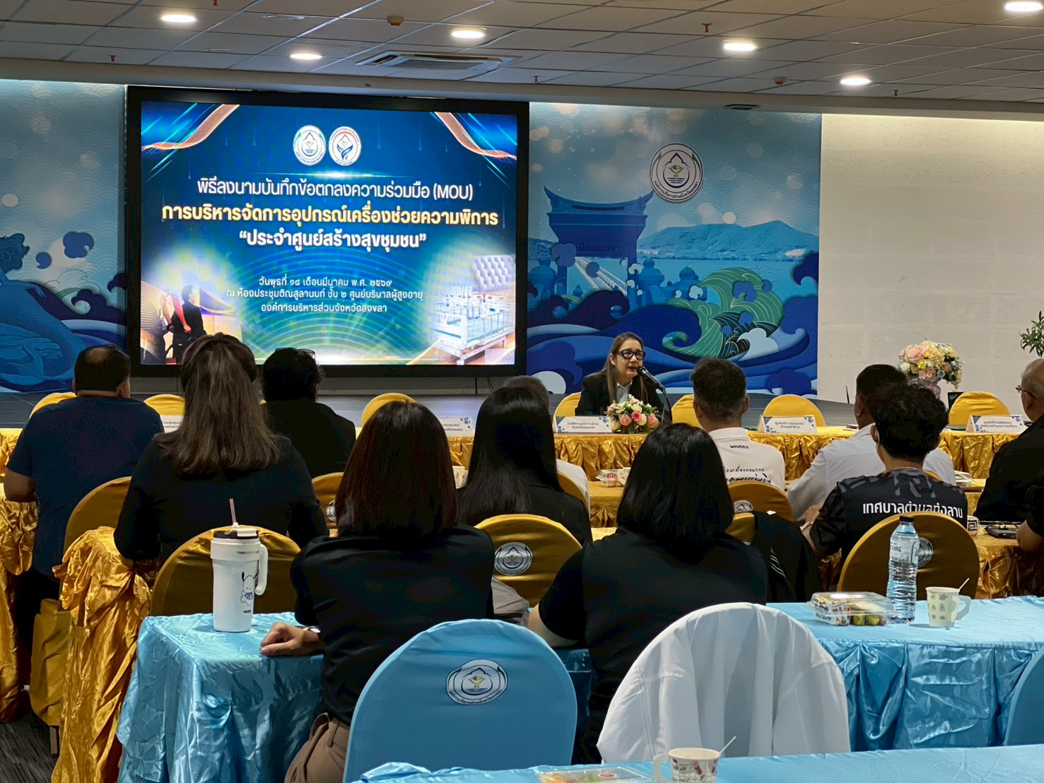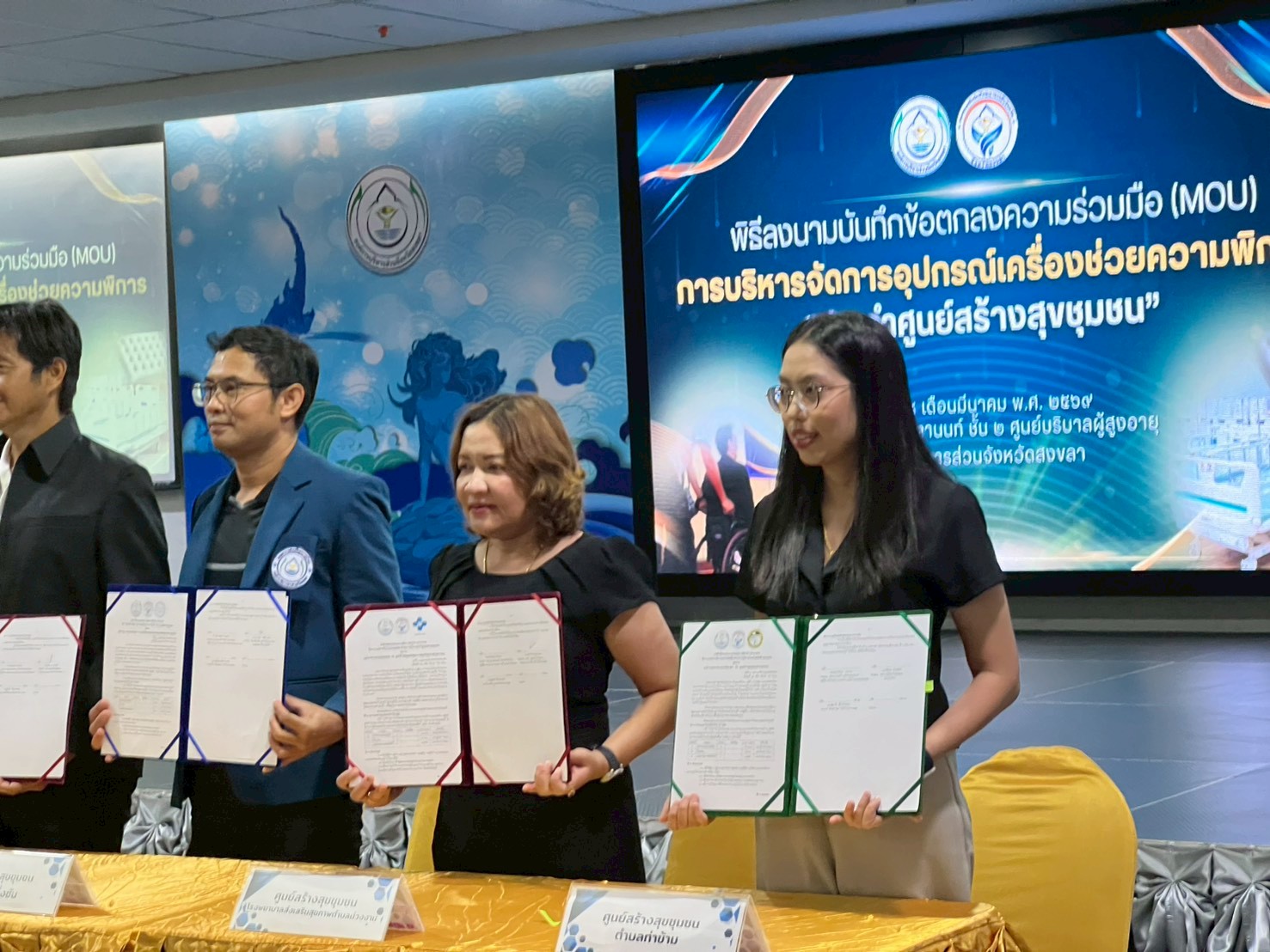 วันที่ 18 มีนาคม 2569 องค์การบริหารส่วนจังหวัดสงขลา โดยกองทุนฟื้นฟูสมรรถภาพจังหวัดสงขลา จัดพิธีลงนามบันทึกข้อตกลงความร่วมมือ (MOU) และจัดอบรมพัฒนาโปรแกรมการยืม-คืนอุปกรณ์ฯ ณ ศูนย์บริบาลผู้สูงอายุ อบจ.สงขลา นำโดยนางสาวปรินดา ปาลาเร่ รองนายกองค์การบริหารส่วนจังหวัดสงขลา เป็นประธานในพิธีเปิด สืบเนื่องจาก องค์การบริหารส่วนจังหวัดสงขลา โดยกองทุนฟื้นฟูสมรรถภาพจังหวัดสงขลาได้ตระหนักถึงข้อจำกัดในการเข้าถึงอุปกรณ์เครื่องช่วยความพิการของพี่น้องประชาชน โดยเฉพาะคนพิการ ผู้สูงอายุ และผู้ป่วยติดบ้านติดเตียง จึงได้ดำเนินโครงการพัฒนาระบบบริการด้านการยืม-คืนอุปกรณ์ฯ ประจำ "ศูนย์สร้างสุขชุมชน" โดยมีวัตถุประสงค์หลักเพื่อกระจายอุปกรณ์ทางการแพทย์ลงสู่ระดับพื้นที่ ให้ประชาชนสามารถเข้าถึงบริการได้อย่างรวดเร็ว ทั่วถึง และเท่าเทียม