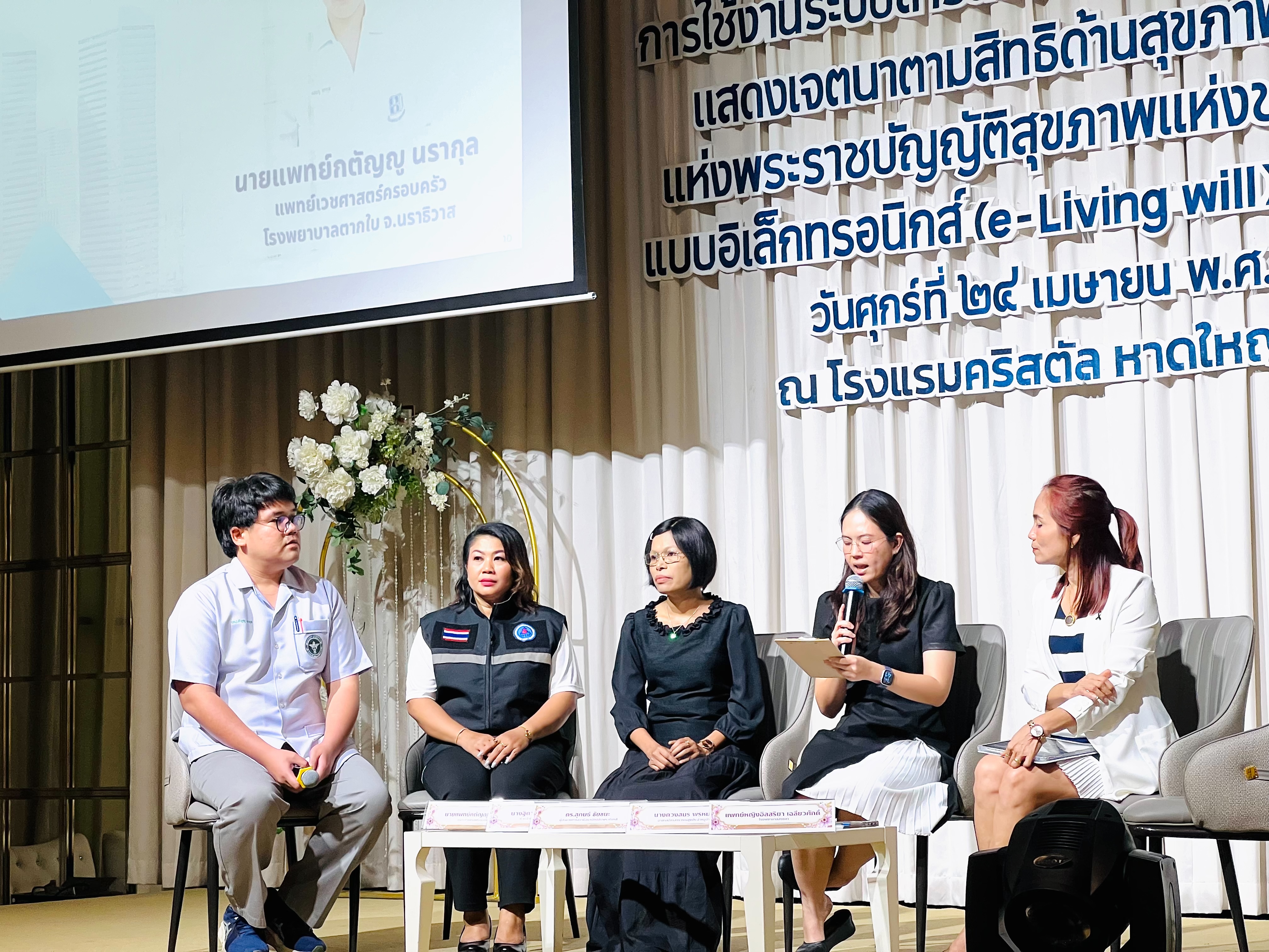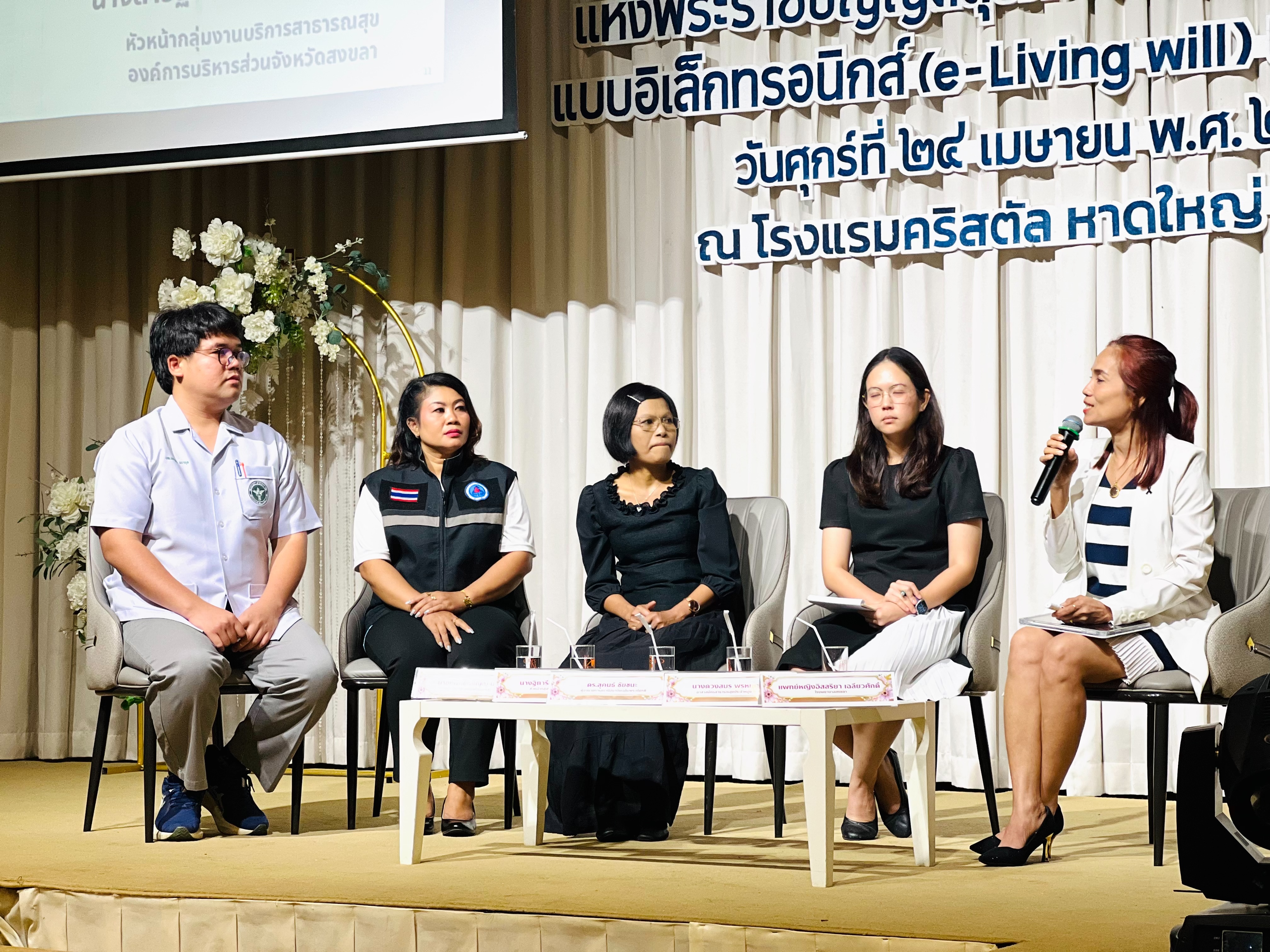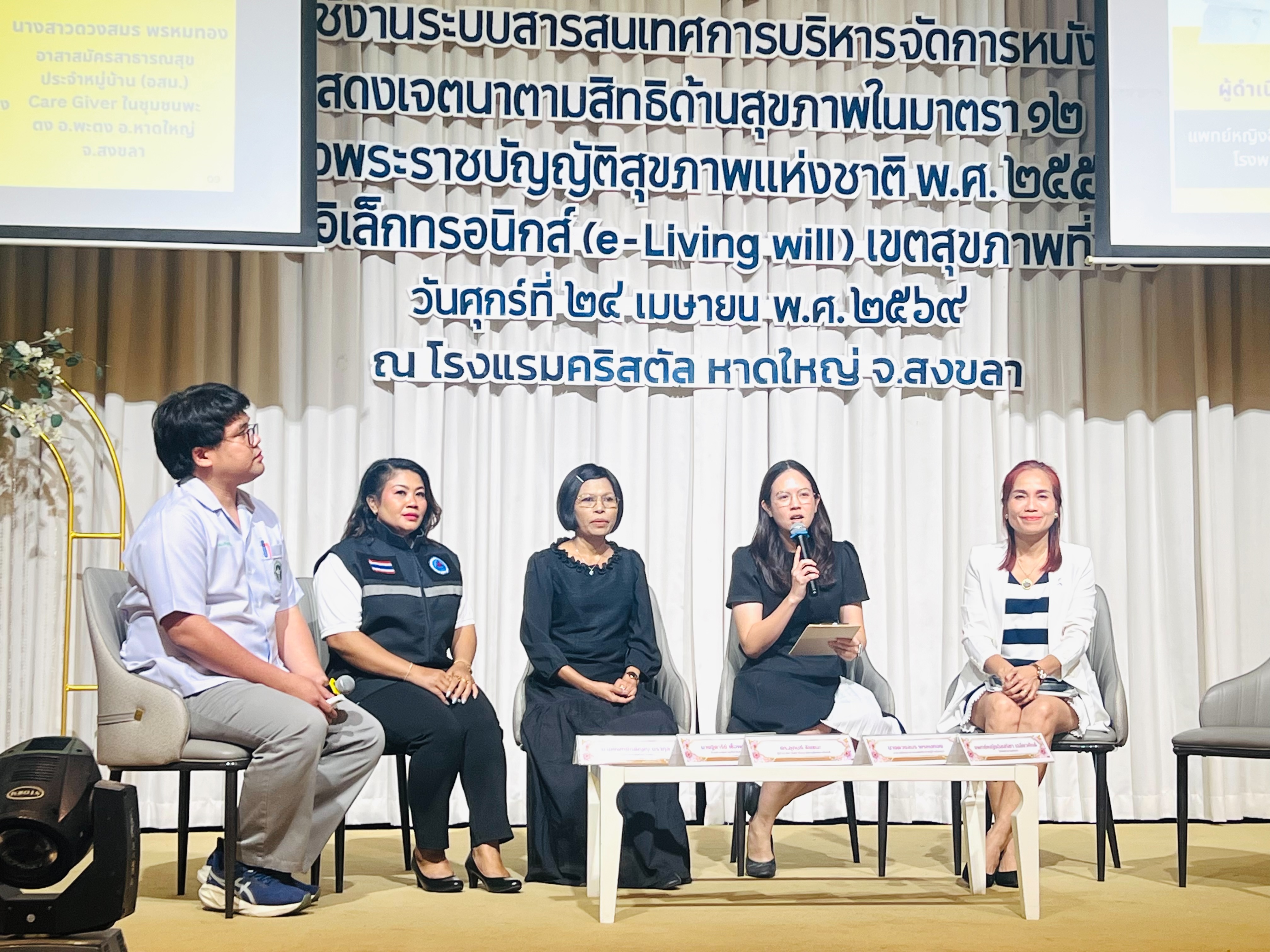 วันที่ 22 เมษายน 2569 กองทุนหลักประกันสุขภาพจังหวัดสงขลา นำโดย นางฐิตารีย์ เชื้อพราหมณ์ หัวหน้ากลุ่มงานบริการสาธารณสุข ร่วมเป็นวิทยากร "การดูแลสุขภาวะระยะท้ายที่เชื่อมโยง มาตรา 12 ในบริบท พหุวัฒนธรรมของเขตสุขภาพ ที่ 12 เพราะการดูแลกันจนถึง "วาระสุดท้าย" คือหัวใจของเรา อบจ.สงขลา พร้อมหนุนเสริมเครือข่ายสุขภาพเพื่อรอยยิ้มของคนในชุมชน ณ โรงแรมคริสตัส หาดใหญ่