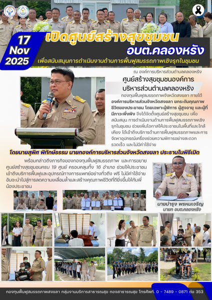 19/11/2568เปิดศูนย์สร้างสุขชุมชนองค์การบริหารส่วนตำบลคลองหรัง