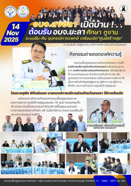 17/11/2568ต้อนรับ อบจ.ยะลา ศึกษาดูงานการบริหารจัดการศูนย์สร้างสุขชุมชน ของกองทุนฟื้นฟูสมรรถภาพ จังหวัดสงขลา